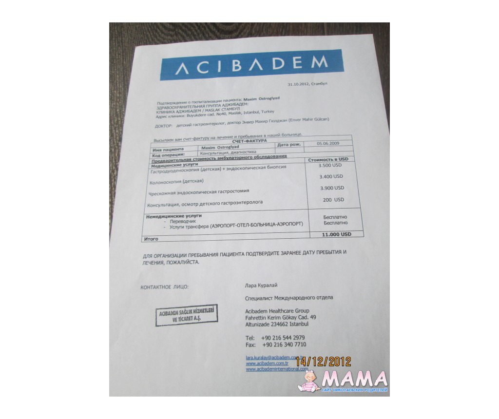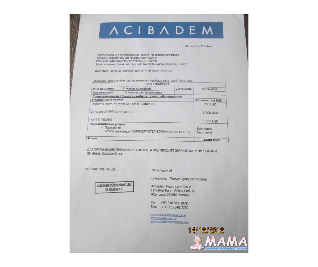 Чтобы выяснить причину, необходимы дорогостоящие обследования: 24-часовой ЭЭГ-мониторинг и обследование на МРТ (3 ТЕСЛА). На территории бывшего СНГ такое обследование делают только в Москве, но только взрослым пациентам, деток не принимают. На территории дальнего зарубежья – в Германии, Израиле и Турции. По стоимости более всего доступна Турция, поэтому мама Максима – Оксана обратилась в турецкую клинику ACIBADEM.