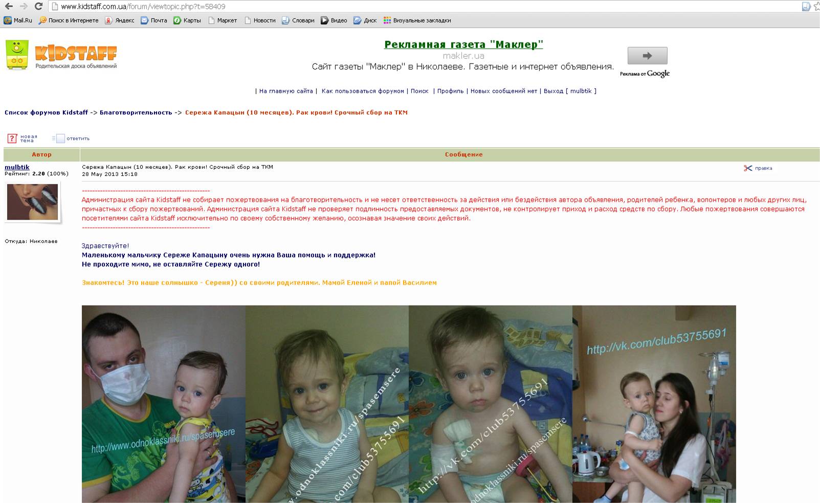 Цитата: #10989 мультик 28 May 2013, 07:35Новости от мама Сережи за 27.05.2013 и вчерашнее фото