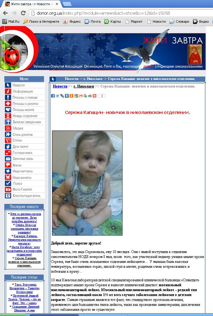 Нужна наша помощь! Сережа Капацин, 10 месяцев, Николаев, Рак крови