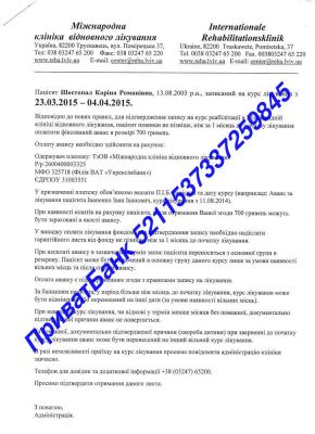 Все поступления были на карту Приват Банка. Спасибо всем за веру в нас. Низкий материнский поклон. Пока меня не было также пришло письмо с Трусковца с ответом на мой запрос. Нам подтвердили, что ждут нас в клинике в любо для нас удобное время. Прислали мне график заездов и попросили перезвонить и уточнить дату нашего приезда. Так же указали сумму реабилитации - 6860 грн. Это сумма без учета проживания. Так что если не получится поехать 4 августа в Новоазовск ( хотя я конечно очень надеюсь на эту поездку). Я сразу звоню в Трусковец и записываюсь к ним на 8 сентября.