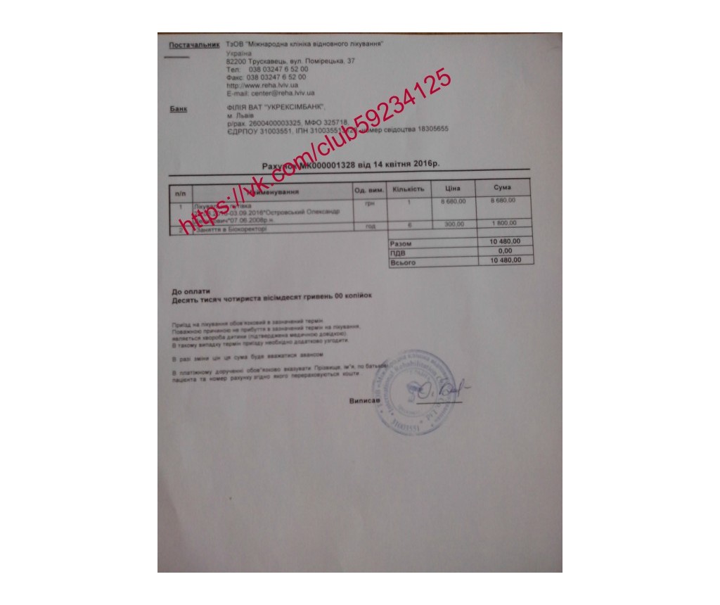 лечение 700грн аванс+7190грн лечение (скидка 570грн)