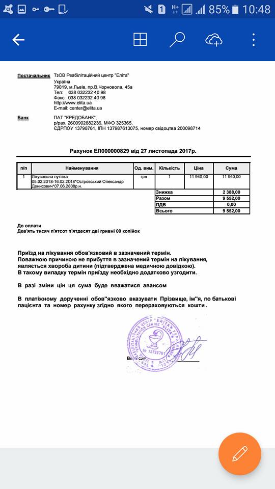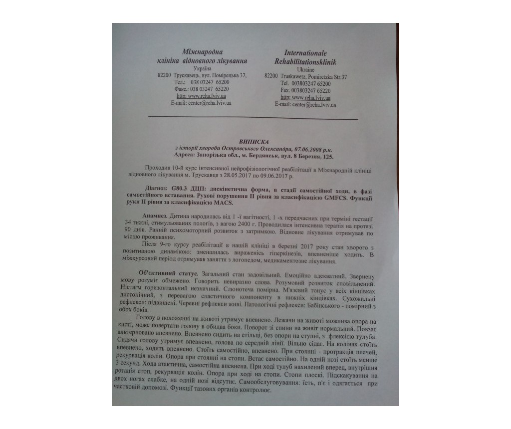 10 курс реабилитации Сашеньки в МКВЛ Трускавец уже оплачен !