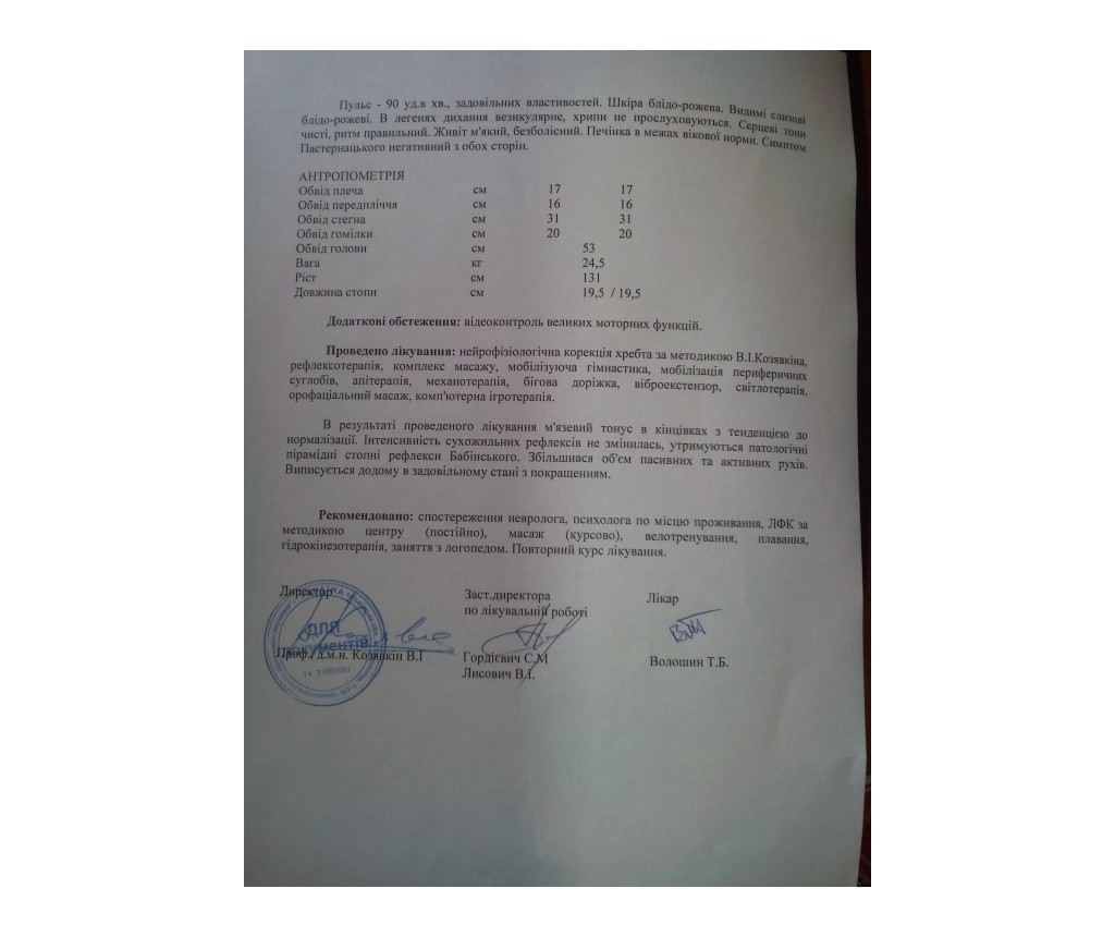 После 9го курса реабилитации в МКВЛ им Козявкина , Саша показал хорошие результаты , но так же врачи отметили что сейчас у нашего мальчика период активного роста организма и к сожалению если гововорить простыми словами, кости растут усиленно, а мышц и за ними не успевают.