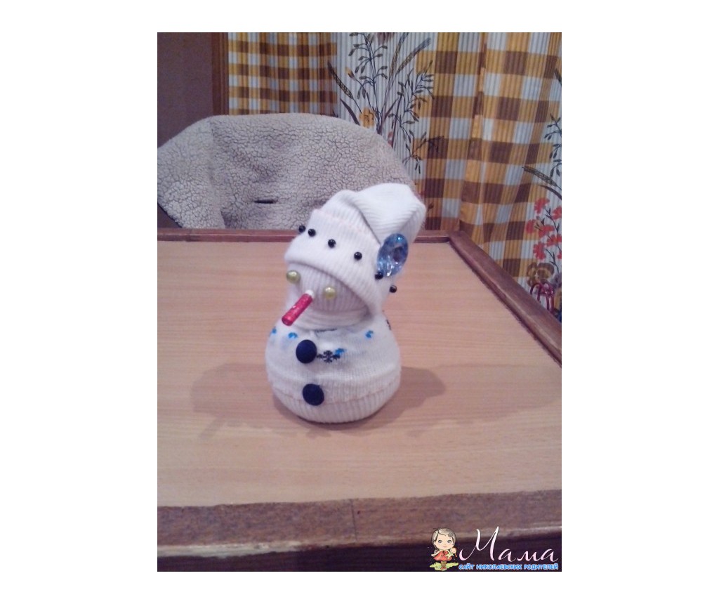 Добрый вечер! Вчера вечером делали с Сашей снеговика с носков. Санька активно учавствовал, хоть и основную работу делала сама. Молодец! Ему так понравился снеговик, что он им играется 2 день подряд- ищет ему мешок для подарков, ведет в дом- наверное поздравлять вместо деда Мороза.