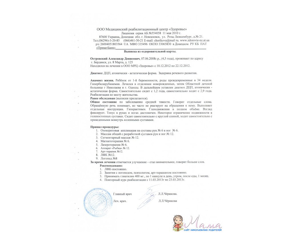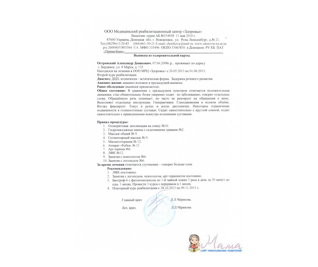 По Закону Украины дети-инвалиды имеют право на реабилитацию в году всего лишь 6 месяцев (в центрах ранней социальной адаптации). И Саньку отчислили в декабре. На все праздники мы желанные гости, а вот посещать группу не можем, ни психолога, ни логопеда. К сожалению. Зачислятся будем в марте(март, апрель, май, сентябрь, октябрь, ноябрь плюс реабилитации, больничные- вот и выходит полгода до следующего декабря). Занятия дома с мамой- это хорошо, но также требуется помощь специалистов. Поэтому надо обязательно посещать психолога, логопеда, хотя бы на эти два месяца. Предоставляю две выписки с МРЦ Здоровье, г.Новоазовск, где в рекомендациях написано о занятиях с логопедом и психологом- постоянно.