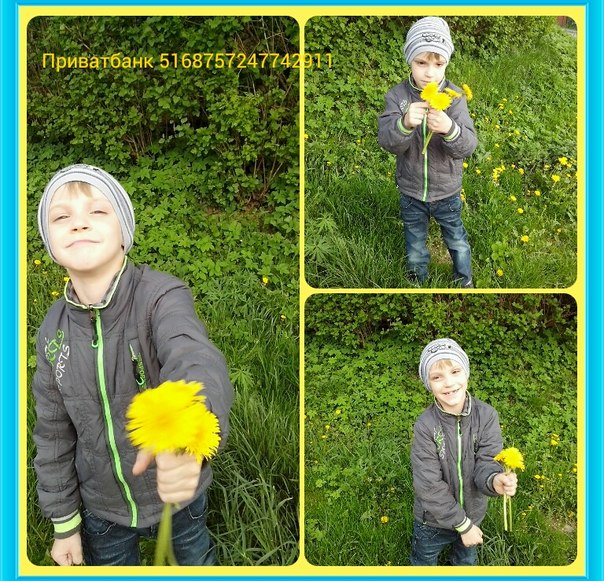 Саша собирал одуванчики и подарил маме букет (такого количества цветущих одуванчиков я с детства не видела).
