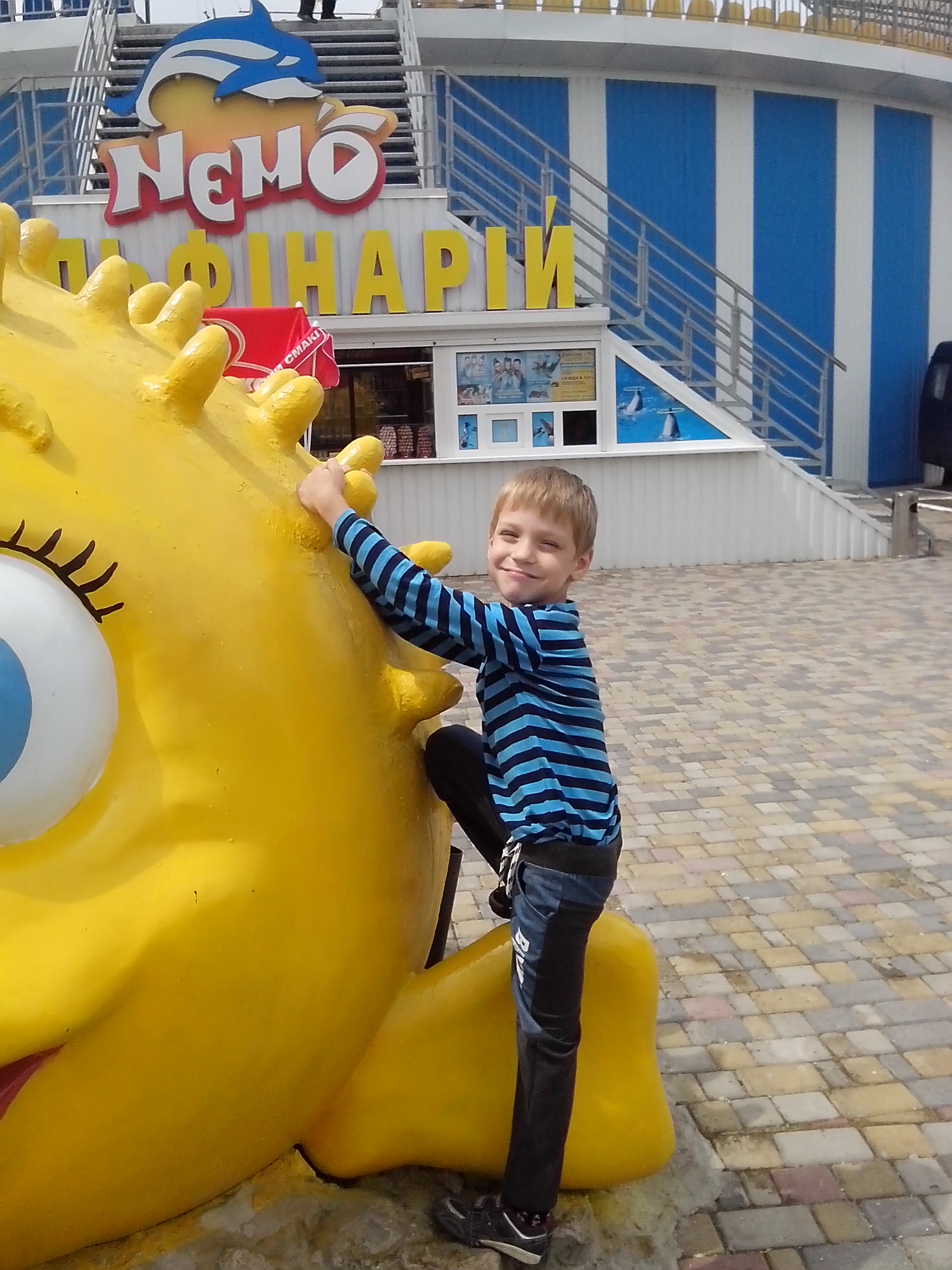 Доброе утро! Немного новостей- все так же осваиваем велосипед, занимаемся с логопедом, готовим руку к письму (не совсем получается, но все же). На море пока не были- вода холодная еще, днем жарко, а ночи прохладные, не успевает прогреться, а сейчас еще и дожди несколько дней подряд идут. Стараемся каждый день "выходить в люди"- ходим на детскую площадку (их у нас 2 поблизости), сейчас у Саши такой период, когда очень хочется общаться с детками, ему интересно, довольно неплохо они понимают друг друга. Поэтому я стараюсь дома не сидеть, а как можно чаще "социализировать2 Сашу. Санькина подружка Соня сейчас ходит на занятия по подготовке к школе, приходит в гости недавно с азбукой, тетрадками и говорит- сейчас будем заниматься. Сели вдвоем за стол, они все разложила, учили букву А, писали, Соня проверяла. Вот так у нас появилась маленькая учительница! Были в дельфинарии на той неделе, в этом году тоже сделали для особенных деток праздник- вход бесплатный. Саша, как всегда, в восторге! Я подумывала о дельфинотерапии, для толчка в развитии речи, но поняла, что в этом году еще рано - Саша немного боится дельфинов, хотя уже намного меньше. Первый раз это было 3 года назад он вообще просто вцепился в меня и безумно кричал, так ему было страшно, мы ушли. Потом я ему показывала выступления дельфинов по интернету, ему понравилось, и сейчас, если есть возможность он от посещения дельфинария не откажется.