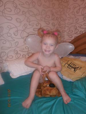 Абрикоска, крылышки пришлись по душе девочкам они их не хотели снимать!!! А как идут бантики и резиночки Сашуне!!!!