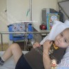 Сегодня(11.04.2014г) капают тромбоциты,завтра на утро запланировано переливание крови.Сашенька все переносит нормально, правда с легкой тошнотой.Ходить много не может, больше ездит на коляске.Играть интереса нет,детей не подпускает к себе .