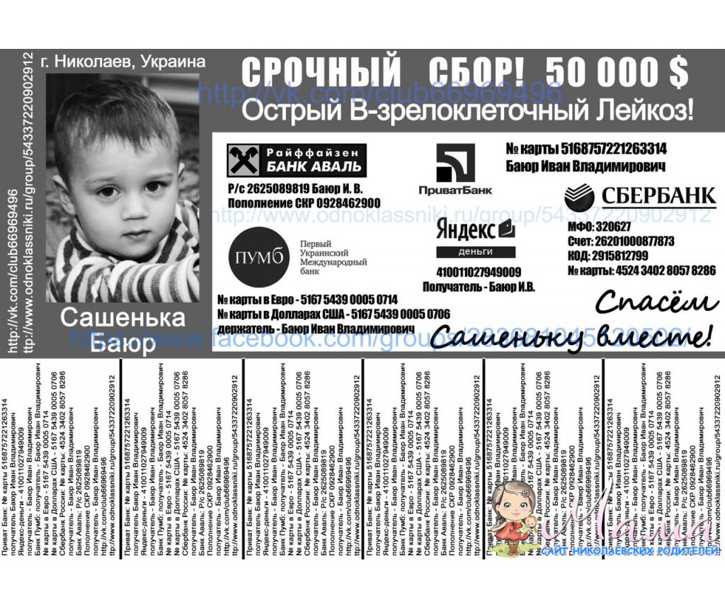 Помогите пожалуйста спасти ЖИЗНЬ маленького Сашеньки!!!