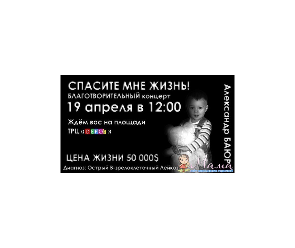 Подтверждаю! Это тот самый мальчик из нашей группы,о котором я просила у администрации разместить информацию несколько дней назад.К сожалению,диагноз поставили поздно и стадия высока,поэтому времени не много.Важна любая помощь,каждая копейка,каждая молитва о Саше.Родители держатся,Санька тоже молодец,мы все верим.К нам на собрание в садик приходил папа Саши,расказывал их историю,без слез ее слушать было не возможно.Сейчас по садику проводим сбор средств,распространяем информацию,как можем...Еще недавно это был здоровый,счастливый и озорной ребенок,как жалко что детство стало Саши не беззаботное...Но надежда умирает последней!