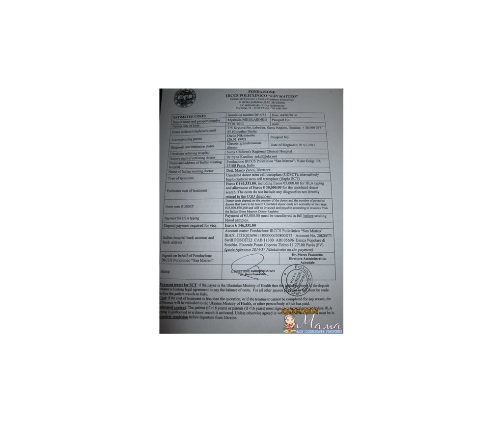 Клиника в Италии нас уже ждем,но нужна большая сумма 146,331 евро,у нас такой суммы нет!