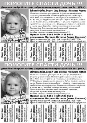 Милые мои, очень нужна ваша помощь в расклеивании и распространении обьявлениий о Соне в вашем районе. Уже есть распечатанные, могу подвести сегодня завтра вам домой. Просим помочь малышке!!!