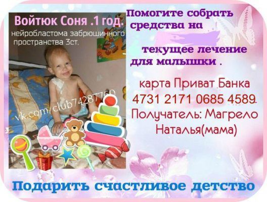Помогите распространить информацию о малышке! Ведь чем больше людей узнают о Софийке, тем выше шанс на помощь...