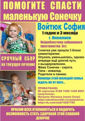 Поддержите маленькую Софийку, помогите ей дойти до конца и победить болезнь !!!