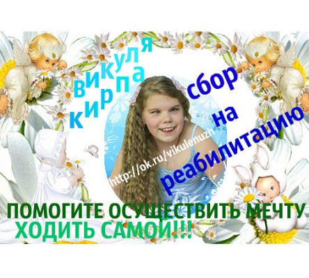17 January 2015 Давайте поддержим Викулю!! У девочки есть все шансы ходить. Но все упирается в деньги. Любая помощь для нас очень важна. Не проходите мимо!!!