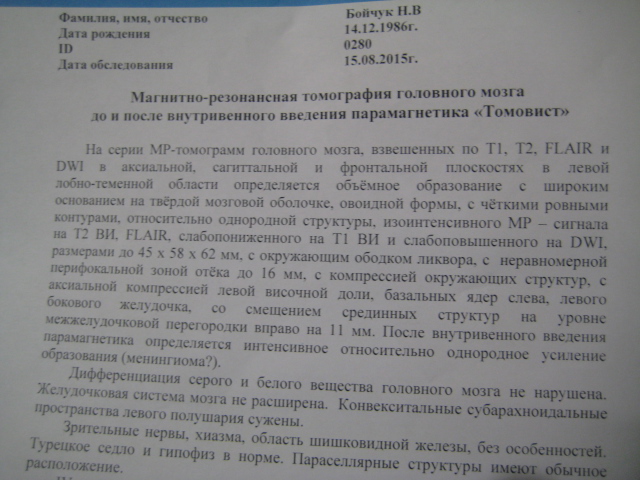 Моему дяде в январе поставили подобный диагноз, только еще сказали что опухоль насттолько велика, чтовырезать всю нет возможности и постоянно тянули деньги, тогда его сын отправил в Киев в институт нейрохирургии все снимки+ заключение врачей . Потом они после звонка туда собрали вещи и поехали на личную консультацию (она полностью бесплатная). После дядю в срочном порядке положили на операцию которая состоялась через 3 дня после приезда, еще через 4 дня его выписали и он спокойно поехал в Николаев (фактически здоровым чел). Все это было бесплатно, даже многое лекарство им выдали,а от отношения и ухода просто в восторге, нашему городу до такого очень и очень далеко! Между прочим, опухоль удалили все, когда тут говорили, что удалить можно только часть.