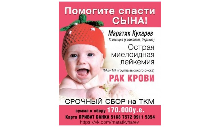 Маратик Кухарев! 1год! Помогите спасти жизнь!