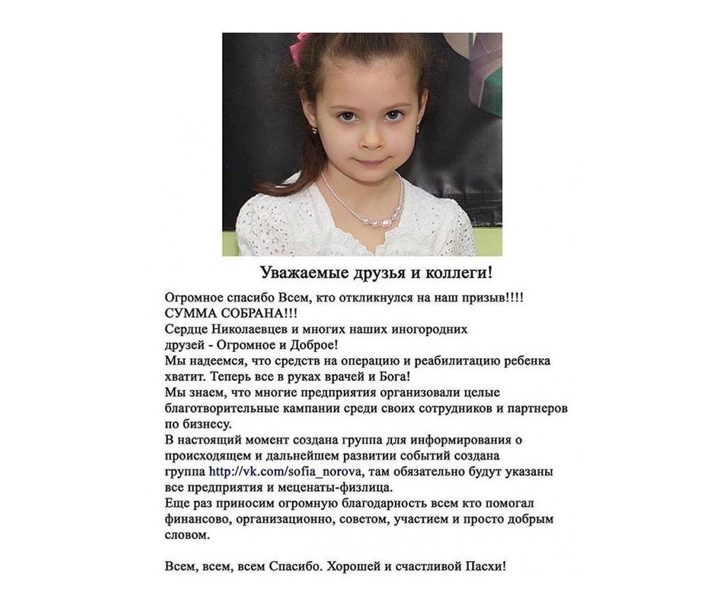 Но главное результат, хорошо, что сумма собралась. Теперь действительно остается только надеяться на лучшее, чтобы малышка хорошо перенесла операцию.