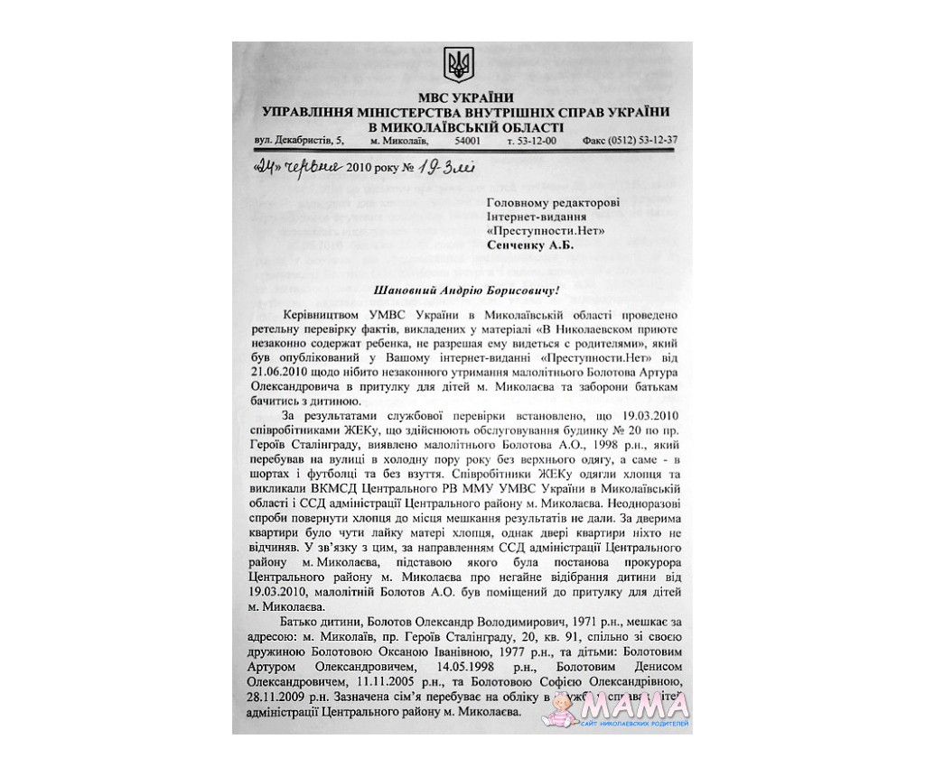 Милиция отписалась, прокуратура тоже а затем выставила как одну из причин лишения родительских прав, служба по детям написала все возможные пути решения данной проблемы исчерпаны и выставила все нам это в вину.