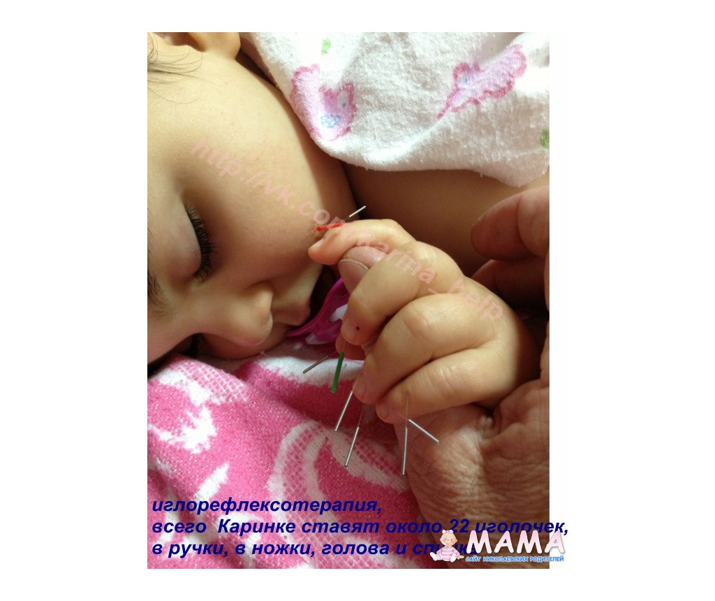 А на иглорефлексотерапии Карина настолько устала, что уже заснула. Сегодня иголочки ставили на пальчики ног и рук, и в голову.