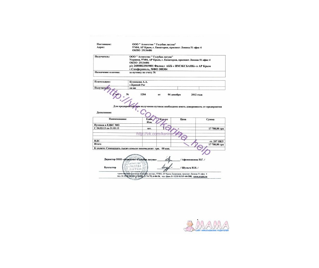 Счет пока предварительный, так как мы записаны через санаторий, а в санатории счет будет готов только после нового года. Да и по сумме значительно меньше.