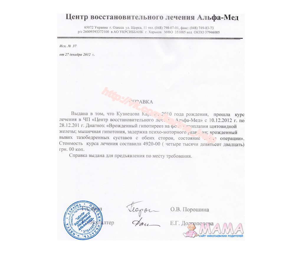 (сумма по счету в Одессе -4 920 грн, проезд -500 грн, проживание на квартире, так, как лечение в центре амбулаторное -21*250грн= 5 250 грн. Итого сумма на реабилитацию в Одессе 10 070 грн.