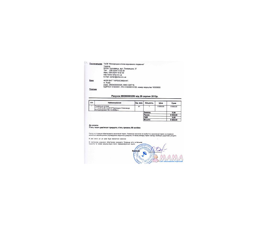 1. Оплата лечения 5935 грн. (27629 р.)