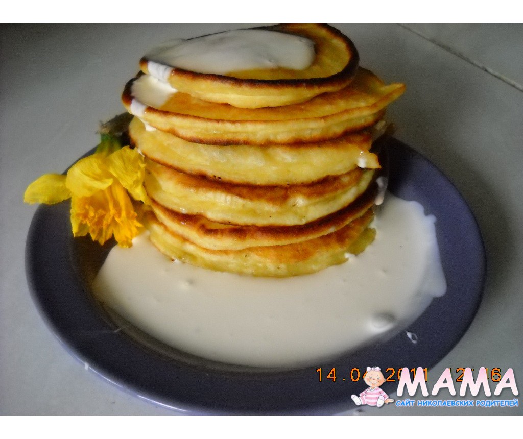 сегодня утром делала оладушки))сама их очень люблю))) сделала из них башенку и полила сгущенкой..мммм)))