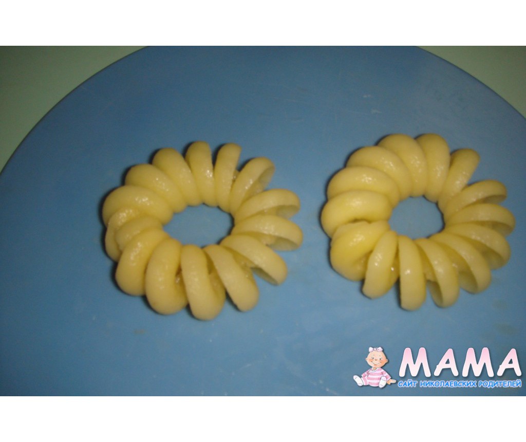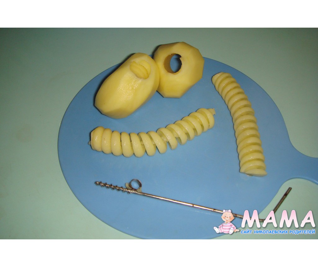 Берем картошку и проделываем в ней отверстие и получаем 2 ингридиента для следующих блюд