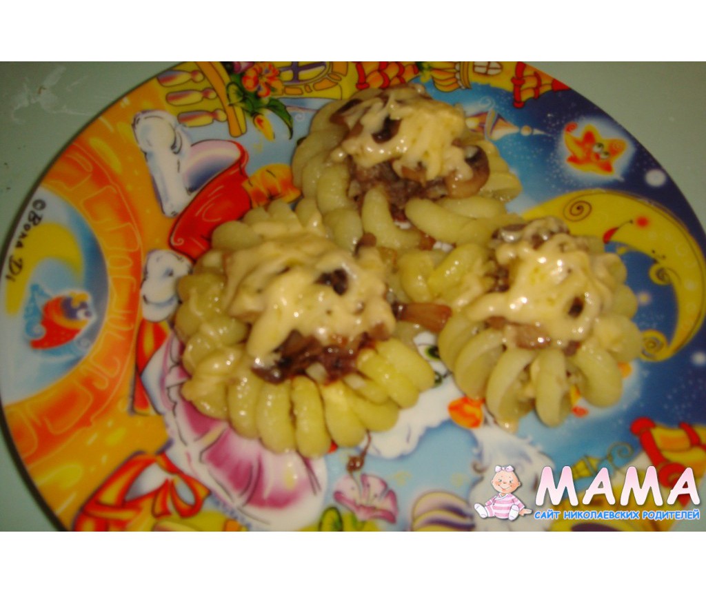 в середину ромашечек ложем фарш, грибы, сыр и в духовочку