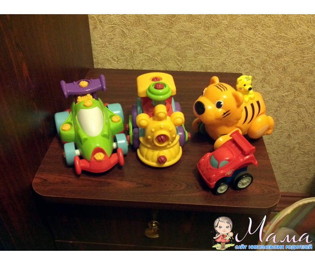 у нас вот такие кинвеевские, спасибо Ире)) машинка и паровоз из серии собирай и играй с шуруповертом дарили старшему на 2 года, до сих пор играется, разбирает-собирает, тигренок из серии нажми и догони- это младшему подарили на годик, тоже носится с ним каждый день, пиносит и требует, чтобы запускали))