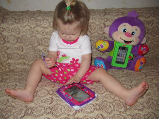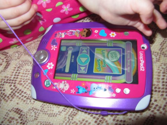 А это наш детский планшет LeapFrog с аккумуляторами. Единственный минус - приложения платные, на нем только 9 бесплатных установлено, но прислали сертификат на покупку нескольких программ, в чем плюс. Работает и от стилуса, и от пальцев. Есть камера для фото и видео, песенки, игрушка "корми, пои собачку" и различные развивалки