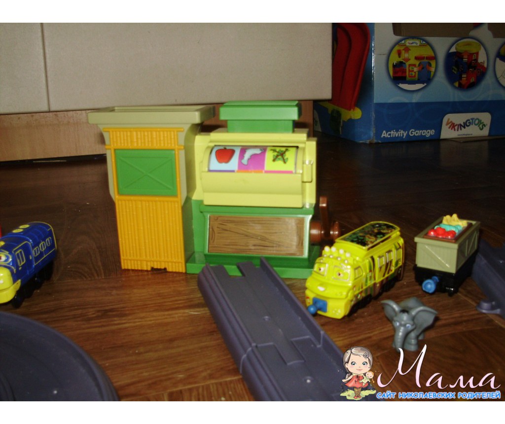 В общем, я разобралась, есть интерактивная железная дорога Chuggington, где паровозики сами ездят (паровозики пластмассовые) и есть обычная, что мы и взяли детям. Паровозики небольшие, железные, качество просто супер. Заказала в Германии еще Депо с Коко и пару паровозиков.