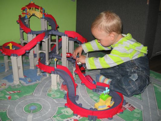 Ну про нас ти в курсі, то давай до подробиць. Перший плейсет (Coco Safari adventure) ми відкрили в грудні, а Дід Мороз приніс ще Ссылка і Ссылка . То у нас не вітальня, а залізничний дурдом.Одразу скажу: ніяких інерційних дурниць, батарейок і моторчиків. Все можна тягати руками і відпускати. Цікаво робити треки з гірками. І класно йде з маленькими дешевими машинками