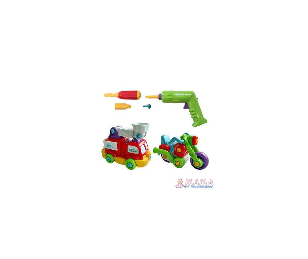 у меня такое было более в дешевом варианте.машинка на болтиках и к ней всякие отвертки,гаечный ключик и т.д. но он так носился с отверткой в руках.что мое сердце не выдержало и спрятала ее куда по дальше