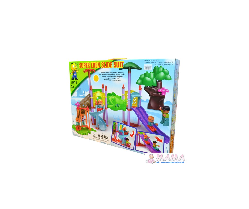 Маю сказати, що ціна його не далеко пішла від уніки. Повний такий набір майданчик коштував близько 100 грн, а великий набір будиночок із звірятками в Уніці коштував 250. Але ж там і можливостей набагато більше, і цеглинок, і фігурок. І це я вже не буду казати за декілька пластин різного розміру в наборі, які самі по собі в Лего обійшлись би гривень в 300-400.