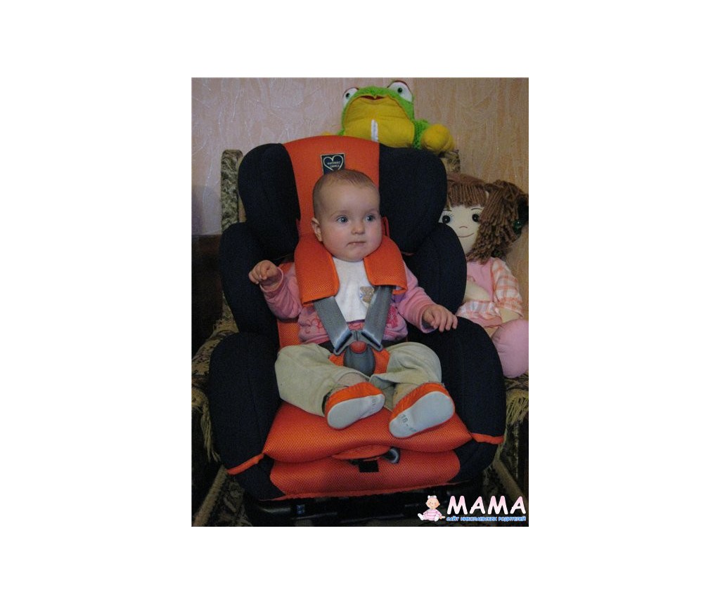 Мы купили кресло год назад, ни в одном нашем краш-тесте я их не видала, нашла только на английских сайтах, фирма Mothers choise. Поскольку английский вообще не учила попросила подругу почитать, вроде как ничего плохого не нашли. Креслом очень довольны, муж часа 2 крутил в руках и рассматривал все детали( потому как брали в Бэмби, а там ничего сказать нам не могли). Кресло от 9 до 36 кг, как бы не говорили что плохи те кресла где сразу много групп, мне нравиться. На фото видно что у нас как-бы двойная сидушка, ребенок сидит довольно высоко и через переднее сиденье видит всю дорогу, если ее вытянуть место для попы становить ниже и шире, регулируется боковая поддержка в плечах(удобно когда зимой в комбезе, а летом голяка) и подголовник. Стоило оно тоже не мало, почти 2000 гр. Фотографировали дома, но малую с него было не достать.