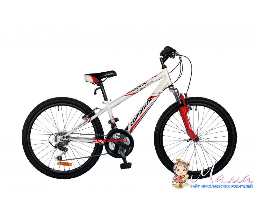 /bqФух, cвершилось-велик наконец куплен!!! Всё не могли решить купить 7- летке наш "китаец", дабы он его убивал как мог или что-то подороже но качественное. Мама кричала что не позволит купить г..но, которое развалится максимум через год, а папа - что он не собирается тратить больше 1500 грн.. уж лучше через пару лет купить что-то стоящее.Вариант б/у не устраивал, т.к. папе нужно видеть что он покупает. В общем через месяц мы уже выбирали между Comanche Pony и Pride. Прайд у нас в городе найти не удалось ( нужно  сесть и померить, посчупать), и вообще сказали что их особо не возят т. к. не соответствует цена-качество. Пришли в маг. "Олимп" на просп. Ленина, померяли несколько размеров рам и остановились на 11( есть 11; 12,5;14) колёса 24"