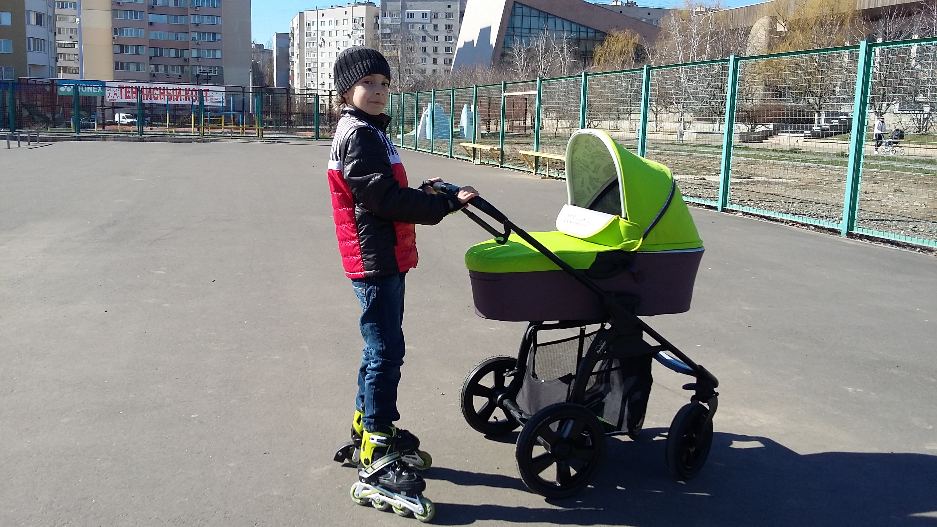 І недоліків - трохи короткувате спальне місце і каптур не опускається до самого "спального місця" у повністю розкладеному вигляді. Коли були у місті замети, візок майже не їхав, тільки по втрамбованому снігу. І іноді "вибиває" фіксатори на поворотних колесах. Для мене недоліки незначні.
