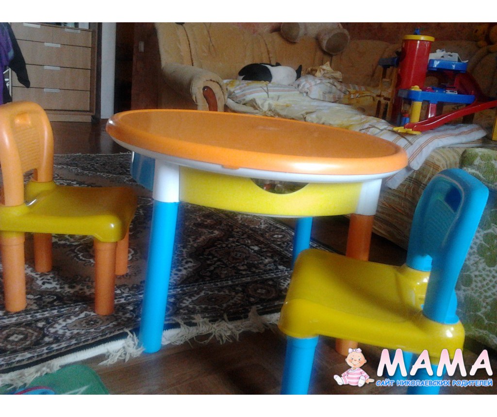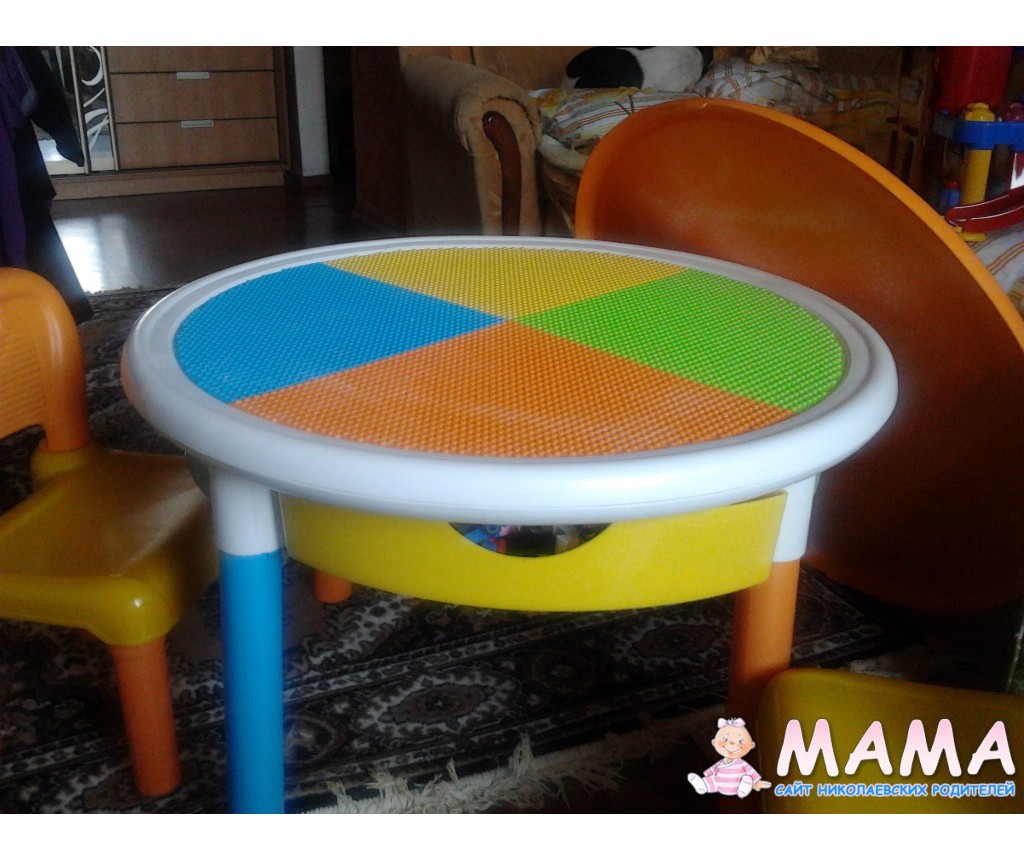 У нас вот такой. Покупали в Бемби полтора года назад. Очень удобный. Пластик очень крепкий и качественній. Стульчики устойчивые и выдерживают даже нашего папу (80 кг). Но, что самое главное - это ящички под ним и поле для лего под крышкой..Все очень довольны!!!