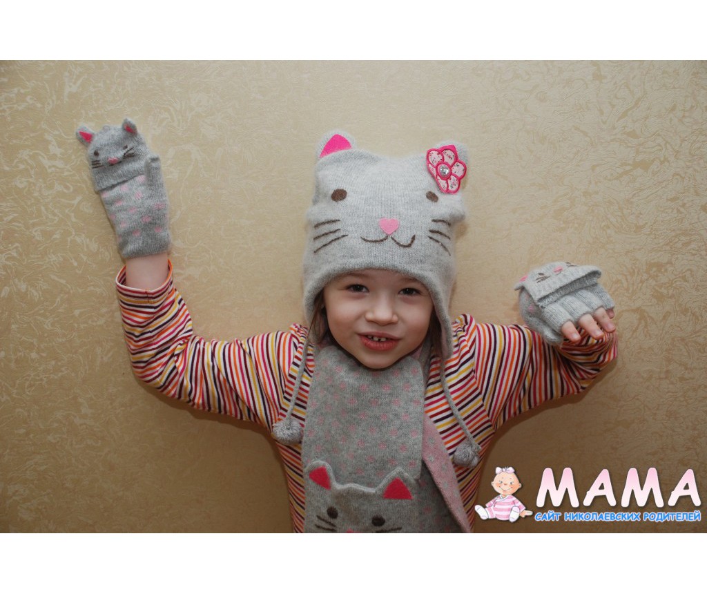 У нас в этом году такой комплект от Accessorize, малая его обожает! Что мне особо нравится, не смотря, на некоторую "пушистость" ниток, отлично стирается в машинке :)