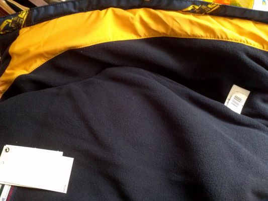 Вопрос конечно не ко мне, но у нас тоже подобная. Внутри флис, кроме рукавов. Там подкладочная ткань
