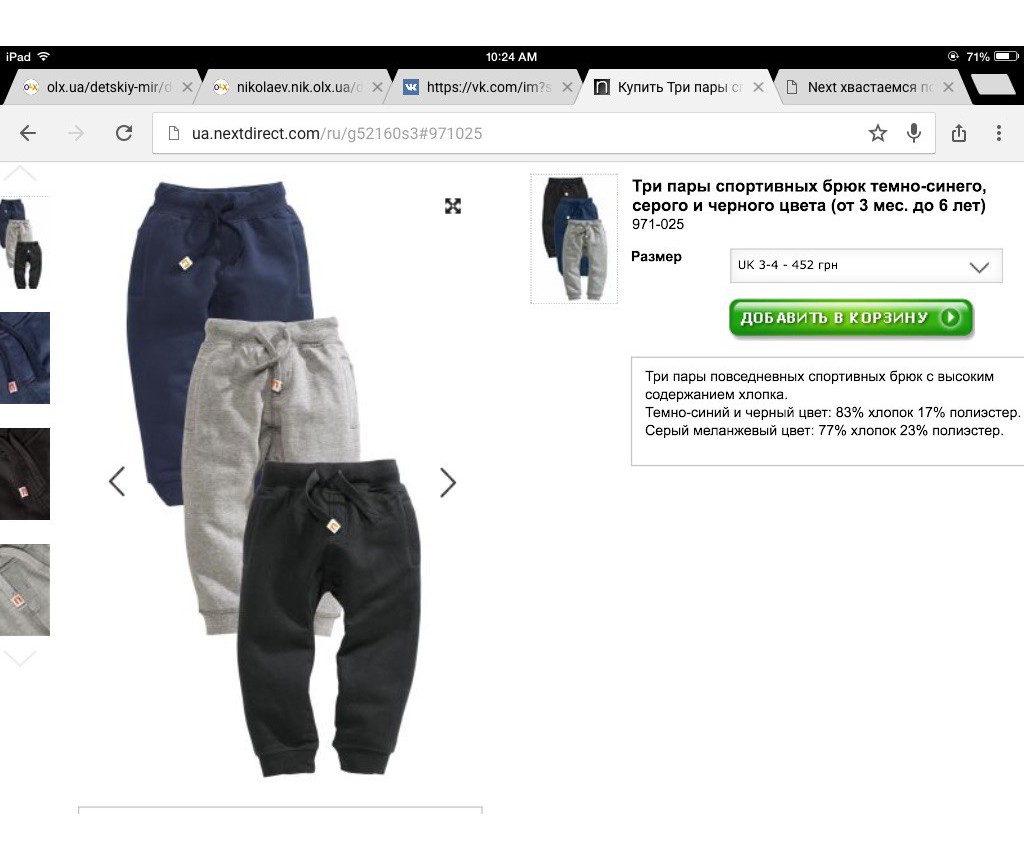 Пристраиваем набор спортивных брючек 3-4 года, оказались впритык. Набор 450 или по 150 грн каждые