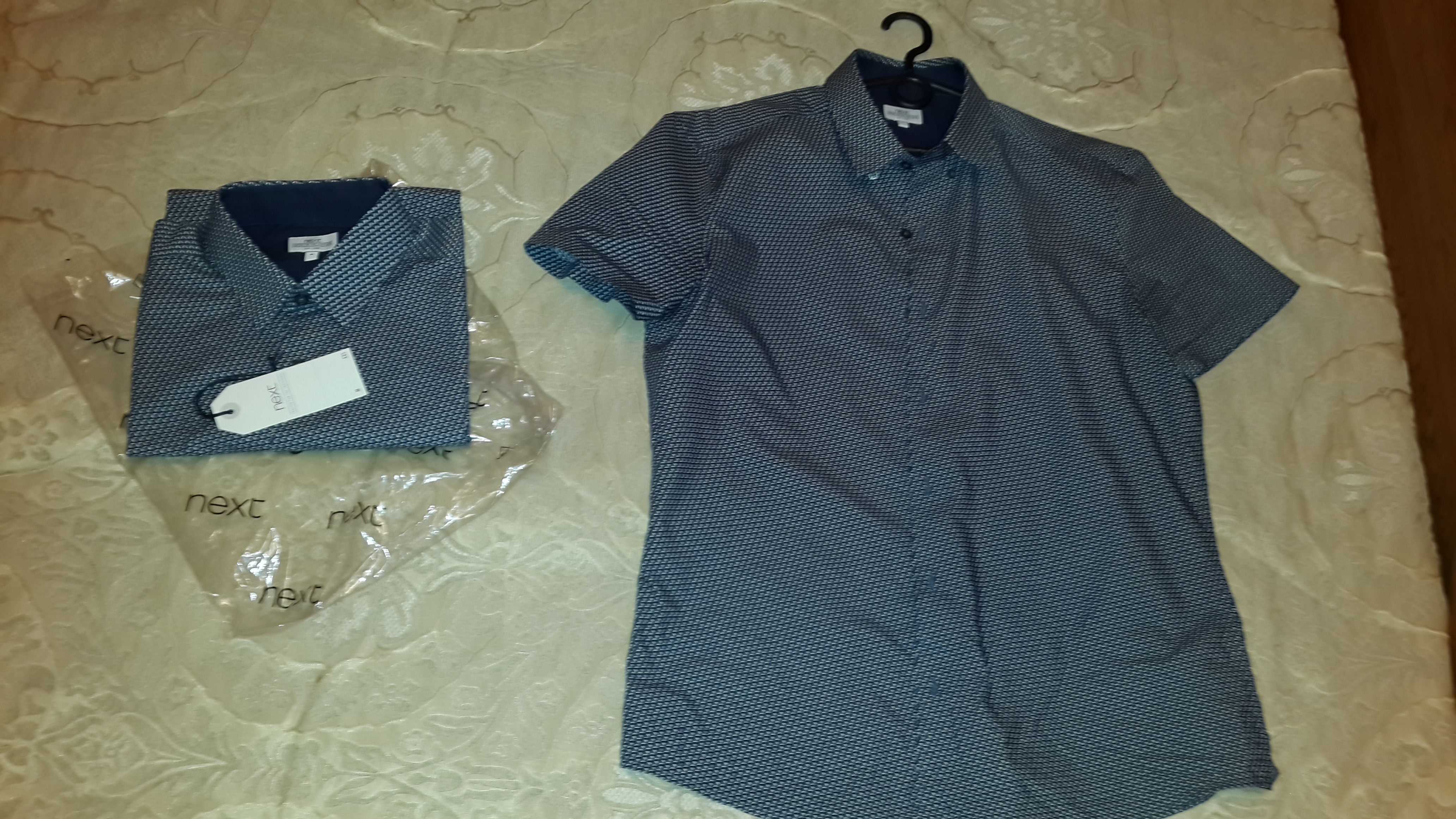 Мужские рубашки. Сначала взяли в размере М, рубашка села по фигуре хорошо, но в груди было немного тесновато (в районе второй-третьей пуговицы). Рубашка очень стильно смотрится, качество на высоте (100% хлопок). Мужу она очень понравилась, пришлось перезаказать в размере L - села отлично. У мужа ОГ - 107 см.