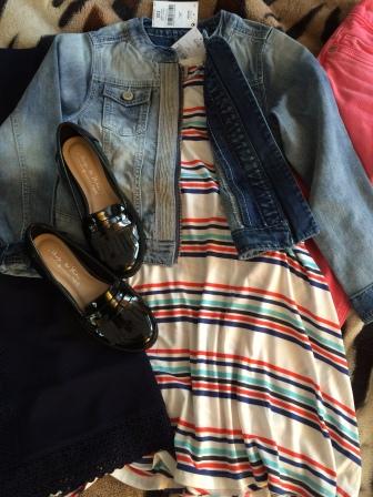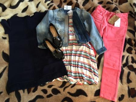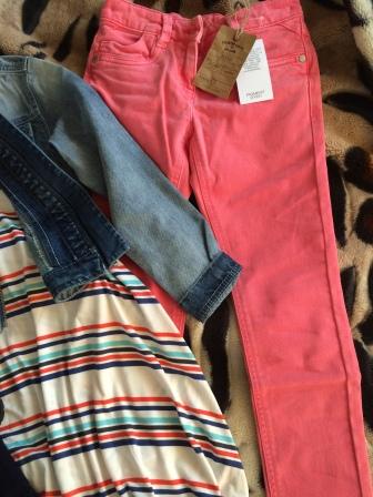 Наша посылка на этот раз шла очень долго. Но вещи, такие долгожданные, приехали и очень радостно, что абсолютно все подошло. Немного туфли великоваты, но у меня такой расчет и был, что бы к осени еще носились. Качество как всегда - супер! Дочке 8 лет, рост 134. Все вещи брала 9 размера, кроме джинс (8р.). И угадала, т.к. джинсы 9-ка были бы велики. Вот наши хвасты))