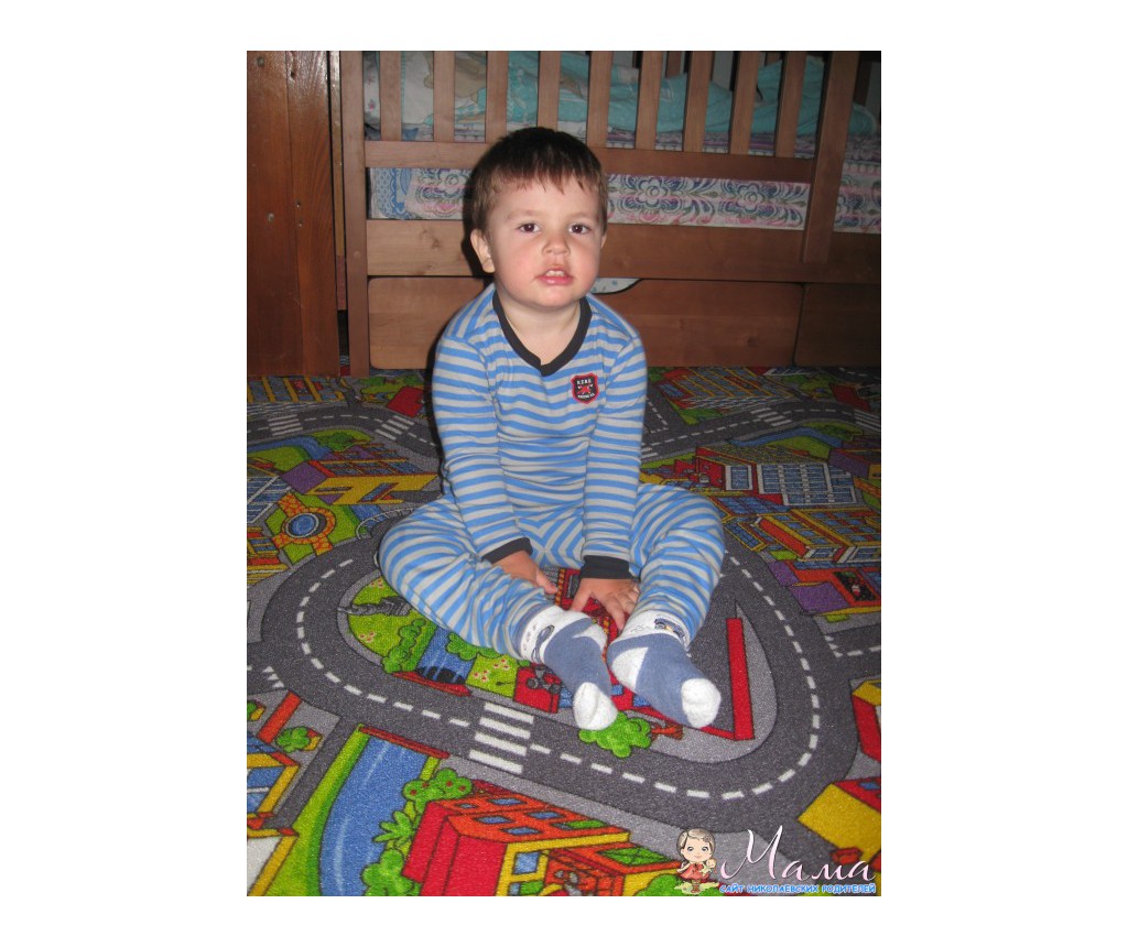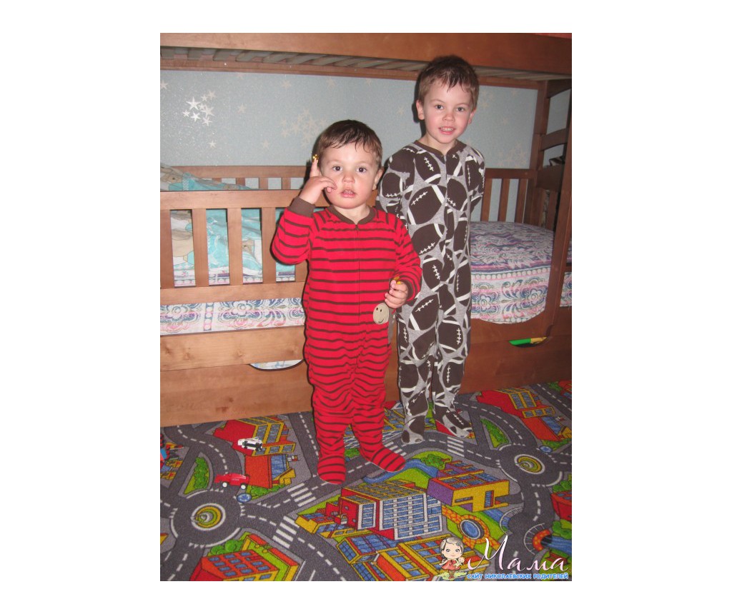 Доехали наши пижамы с Картерс. Две флисовых и две тонких. Малой мой бедный уже дрессированный - получил посылку, одел, пошел к стене фоткаться