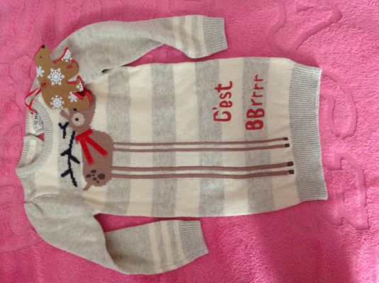 В длину есть куда расти, рукава в принципе тоже, но по спинке и плечам он на нас почти уже. Пройма под мышками могла быть и больше, не знаю, как на долго нам его хватит и влезем ли мы в него в флиске.