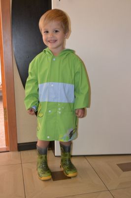 А это я подобрала комплектик на дождливые осенние деньки - сапожки Демар и курточка-дождевик прорезиненная. И то, и то купила б/у - и прилично сэкономила, хотя состояние вещей на 5!