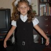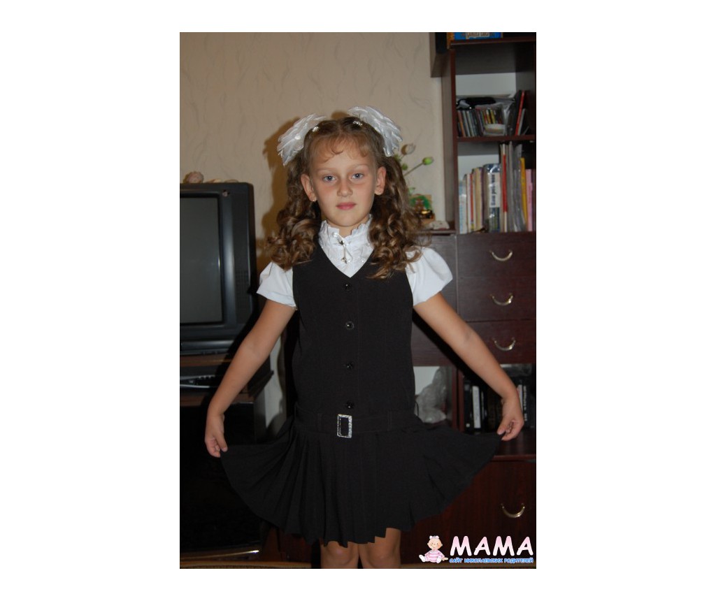Это сарафан и пиджак, фото где она в брюках нет к сожалению. Мы брали тройку "Любаша".Сарафан очень удобен тем, что там пуговицы, а не змейка сзади, расстегнула как халат и все, быстро и ребенок не мучается. По пиджаку очень красивая строчка, на фото жаль не видно. Потом отдала форму девочке где мать сама растит 3-х, она ходит и по форме не скажешь что ее 3 года относили. Еще б взяла, но уже 4-й класс ей подавай сарафан с корсетом, юбку с атласои и т.д.